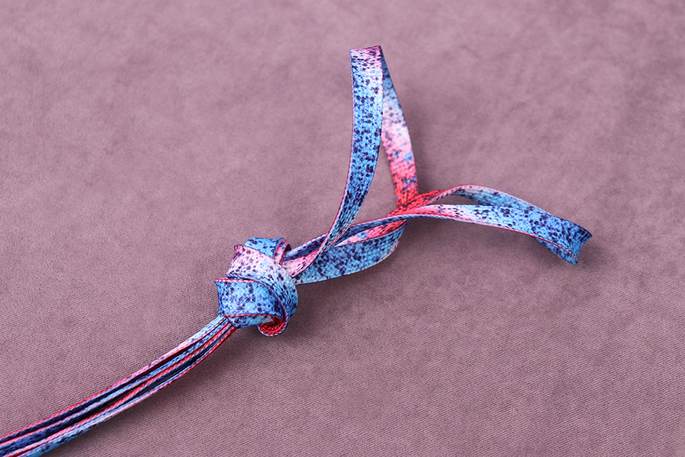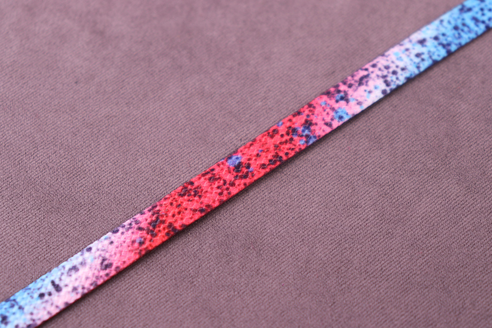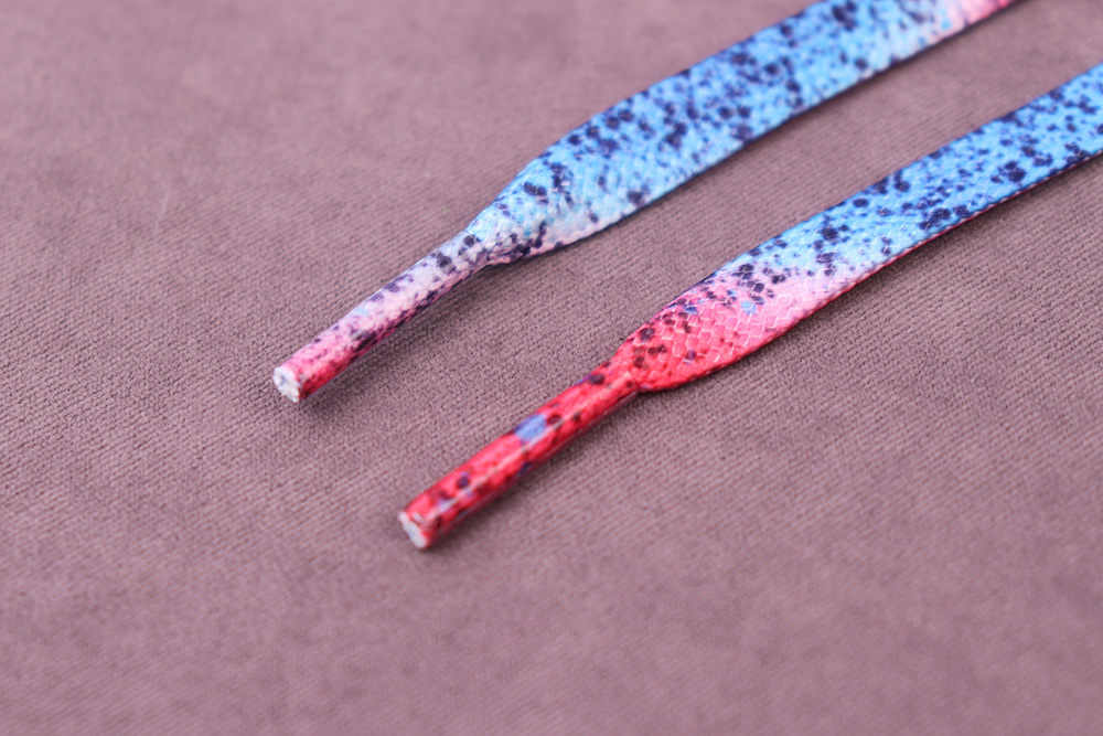 Шнурок 08*140см плоский Красный/Голубой с черными вкраплениями
