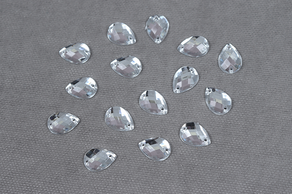 Стразы пришивные 10*14мм пластик капля Кристалл