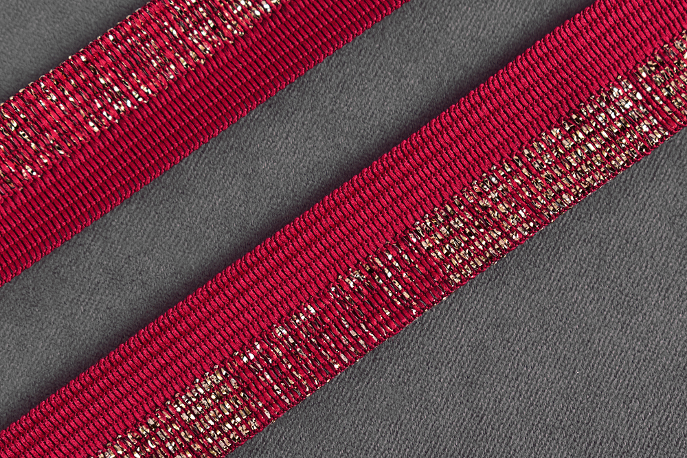 Лента окантовочная 18мм с люрексом Бордовый/Серебро