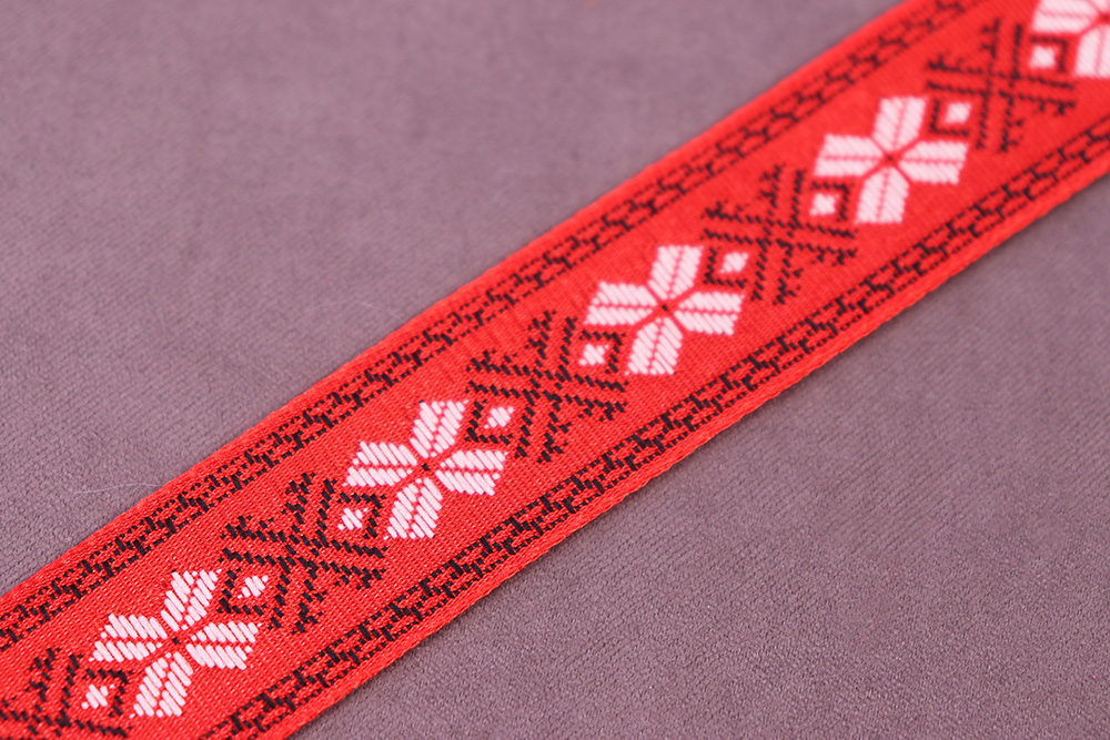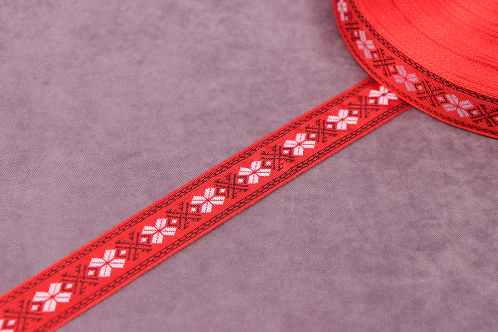 Лента 22мм жаккардовая 9081 Славянский орнамент Красный/Белый/Черный