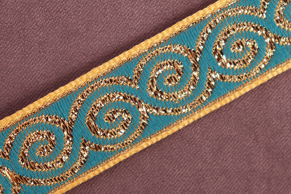 Лента 18мм жаккардовая 8681 Бесконечность Желтый/Бирюзовый/Золото