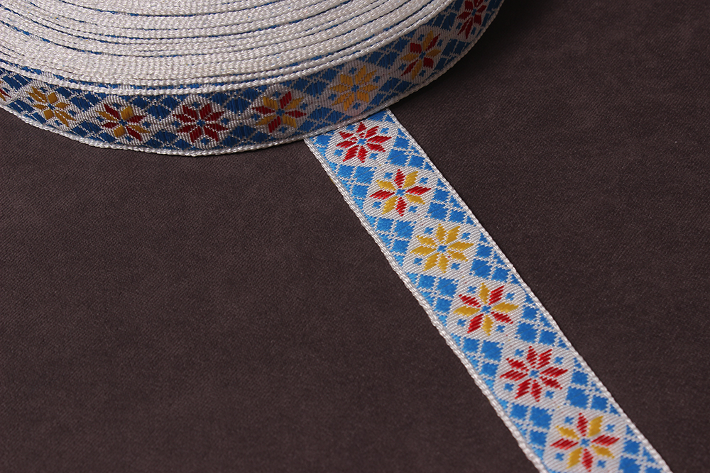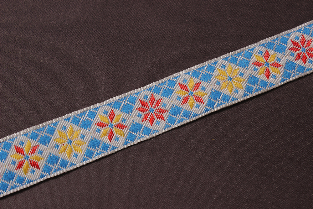 Лента 18мм жаккардовая 9099 Геометрия Белый/голубой/желтый/красный