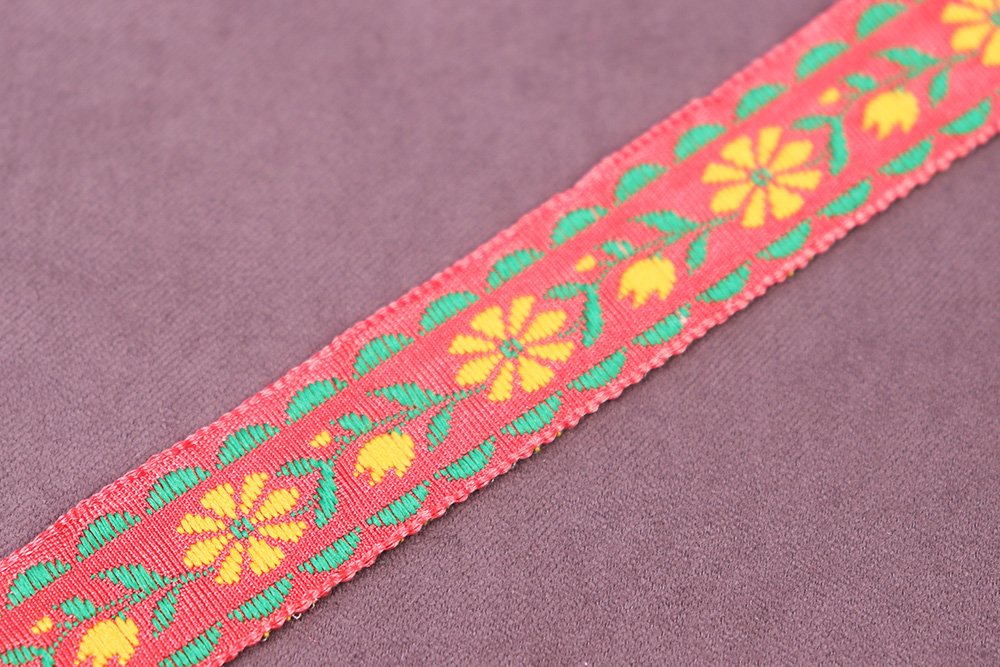 Лента 16мм жаккардовая 8973 Цветы Розовый/Желтый/Зеленый