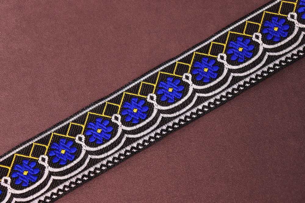 Тесьма жаккардовая 33мм Черный/Синий/Белый/Желтый