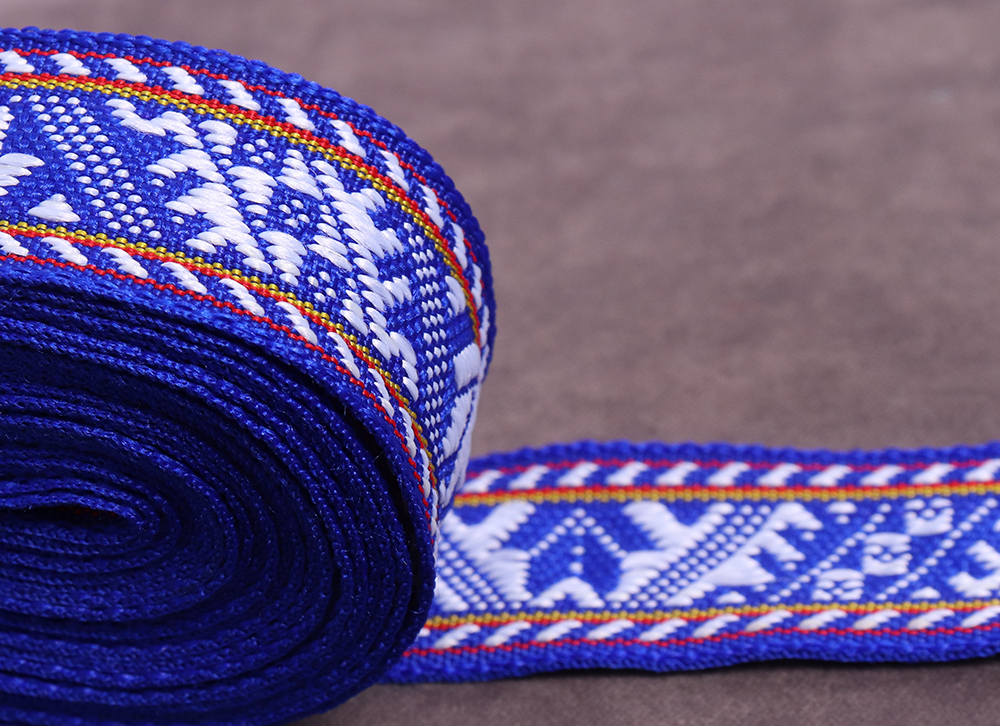 Тесьма жаккардовая 20мм Славянские узоры Синий/Белый