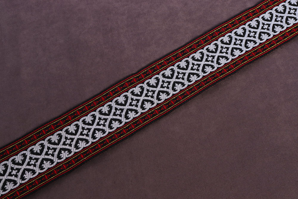 Тесьма жаккардовая 50мм Этнические узоры Красный/Золото