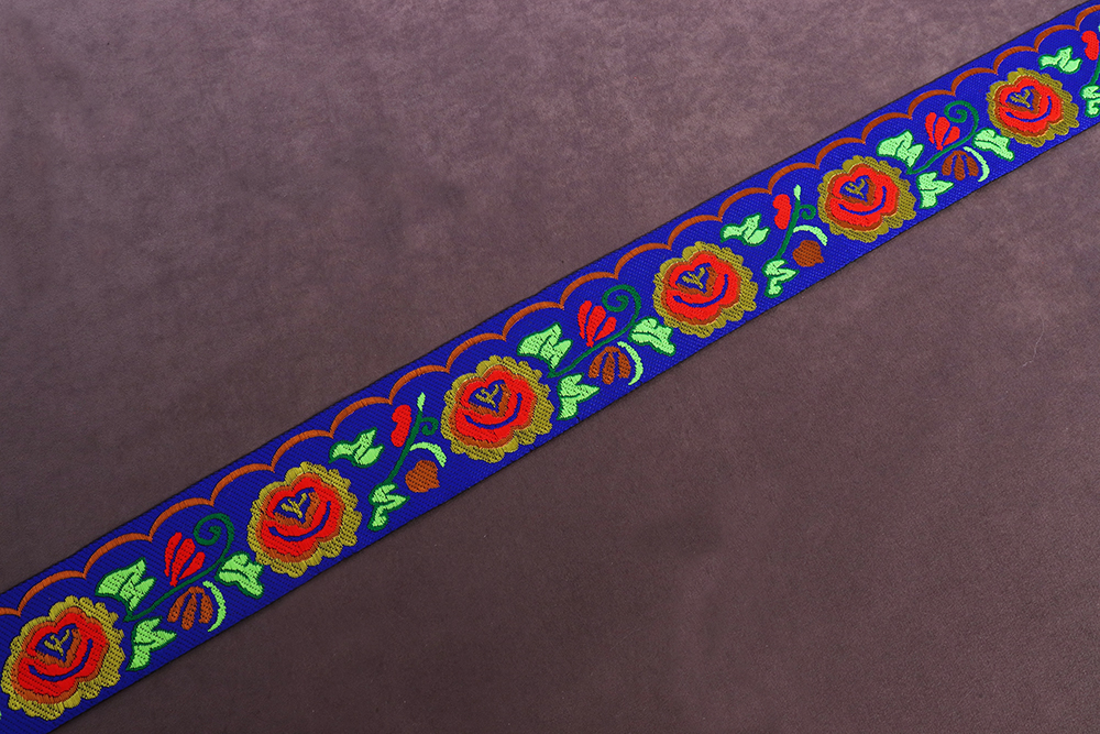 Тесьма жаккардовая 50мм Цветы Синий/Красный/Зеленый