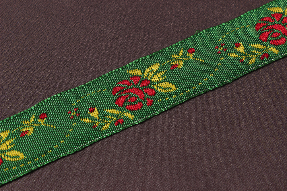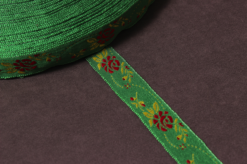 Лента 20мм жаккардовая 8536 Розы Зеленый/желтый/красный