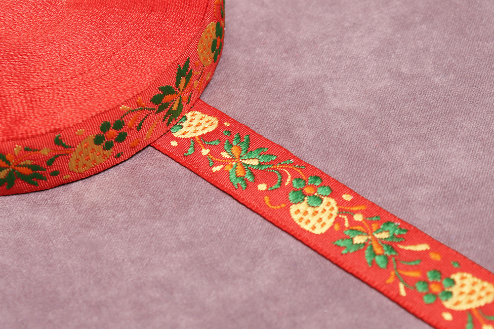Лента 18мм жаккардовая 9438 Земляника Красный/Желтый/Зеленый