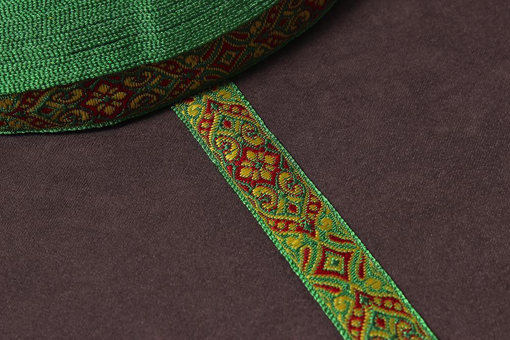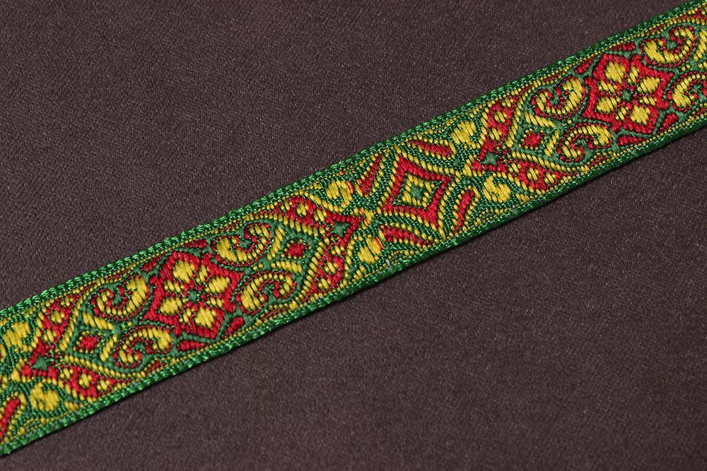 Лента 17мм жаккардовая 9188 Восток Зеленый/красный/желтый