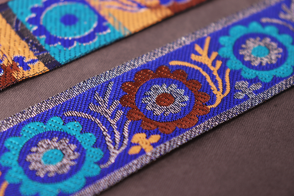 Тесьма жаккардовая 33мм Орнамент Синий/Серебро/Коричневый