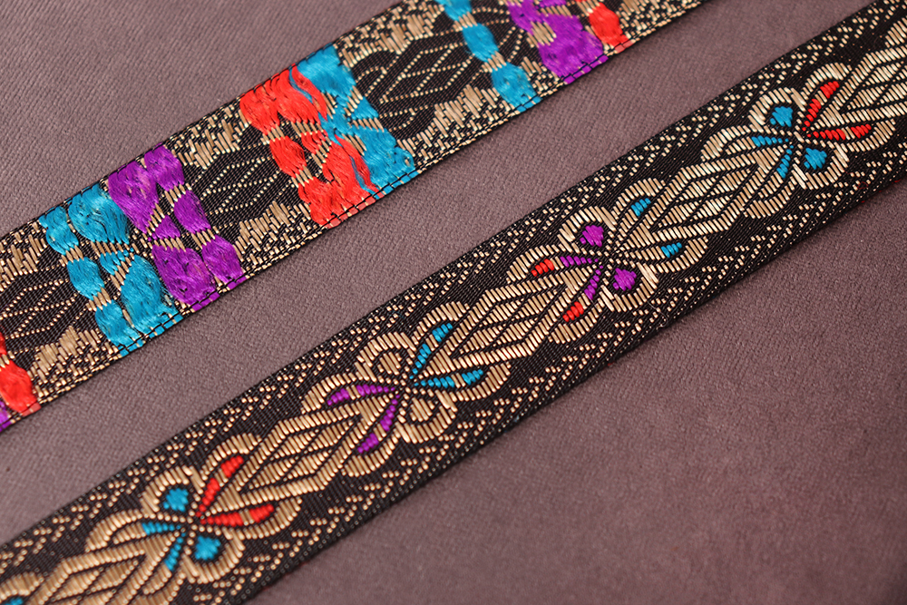 Тесьма жаккардовая 20мм №8 Орнамент Черный/Золото/Фиолетовый