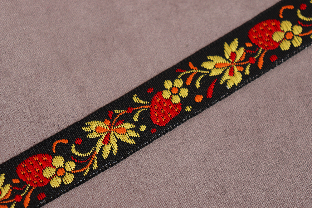 Лента 18мм жаккардовая 9438 Земляника Черный/жёлтый/красный