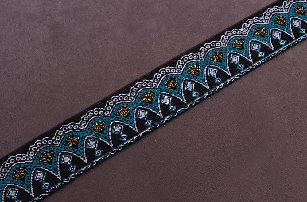 Тесьма жаккардовая 50мм Орнамент Черный/Бирюзовый