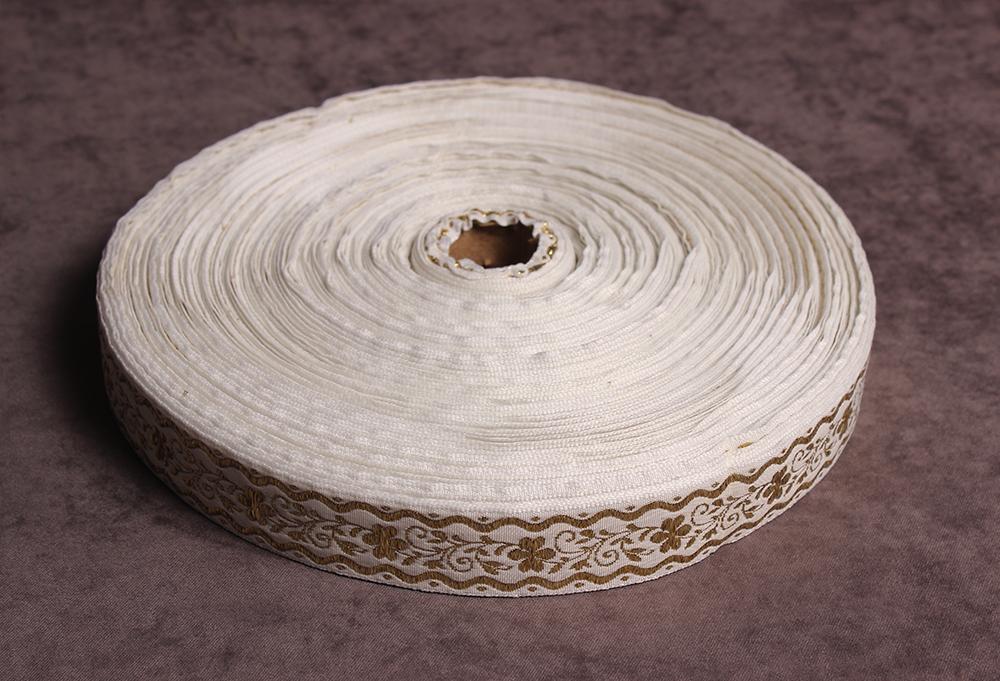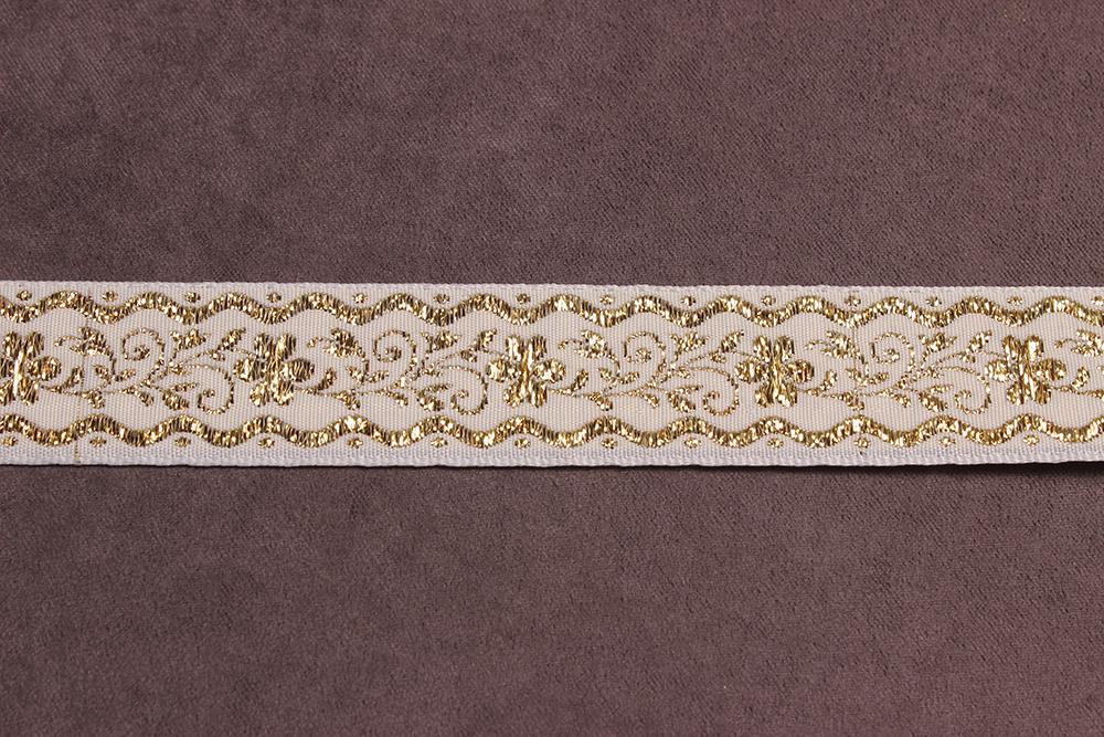 Лента 23мм жаккардовая 9016 Золотые цветы на белом