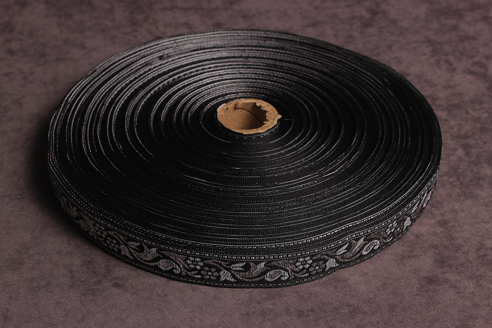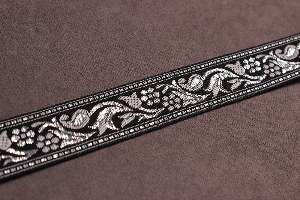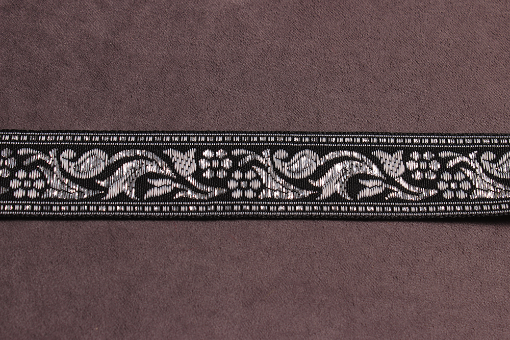 Лента 23мм жаккардовая 9042 Цветы Чёрный/серый/серебро