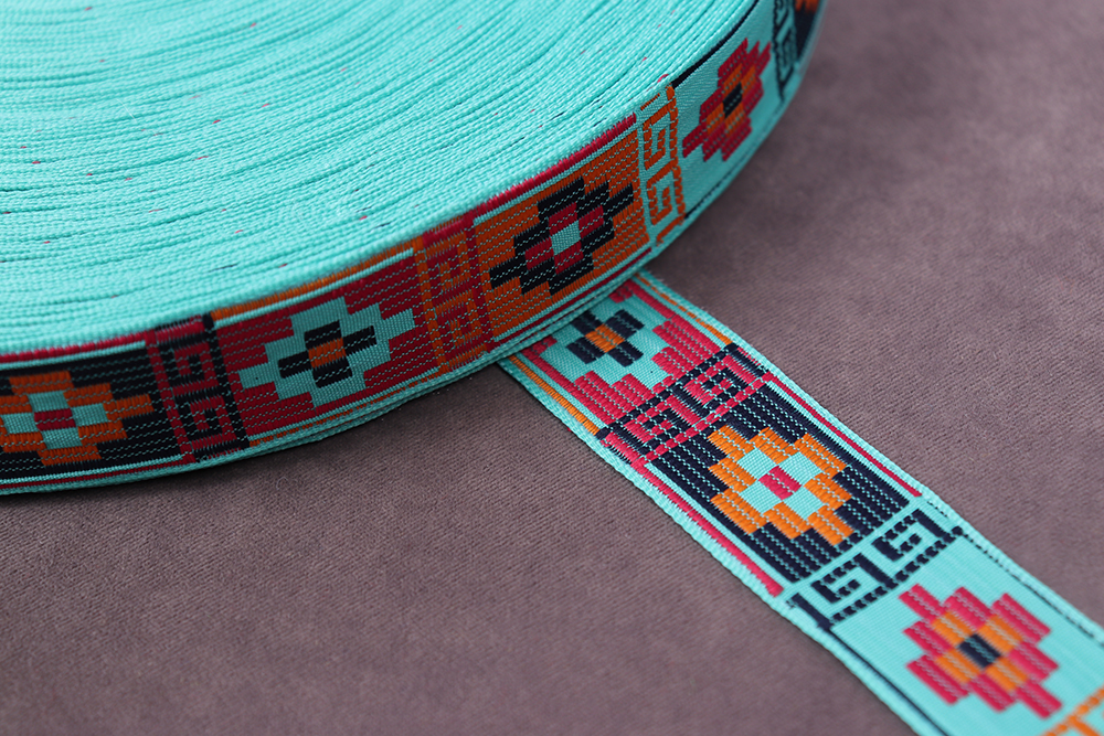 Лента 22мм жаккардовая Геометрический узор Бирюза