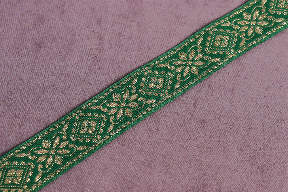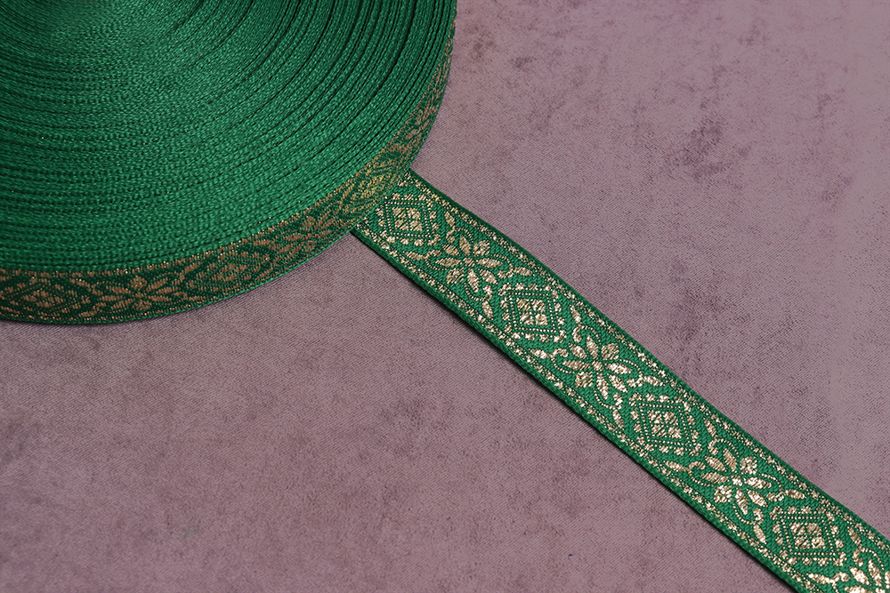 Лента 23мм жаккардовая 9824 Узоры Зелёный/золото