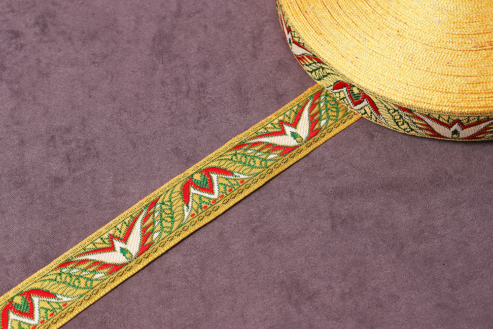 Лента 22мм жаккардовая 7971 Лилия Жёлтый/красный/белый/зелёный