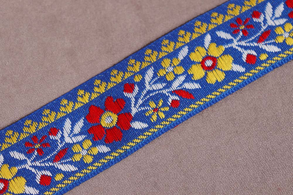 Лента 31мм жаккардовая 9803 Цветок Синий/Желтый/Красный