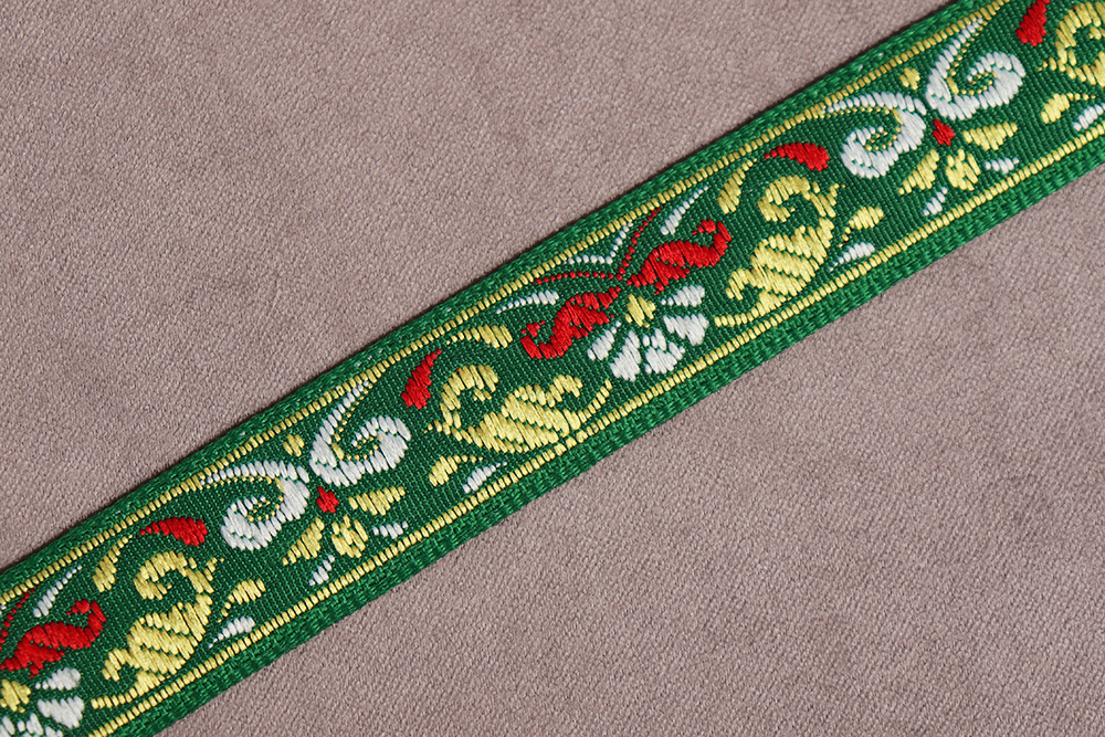 Лента 15мм жаккардовая 9119 Цветы Зеленый/красный/золото