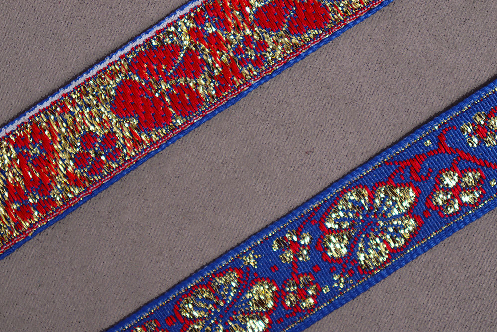 Лента 16мм жаккардовая 9579 Маки Синий/Красный/Золото