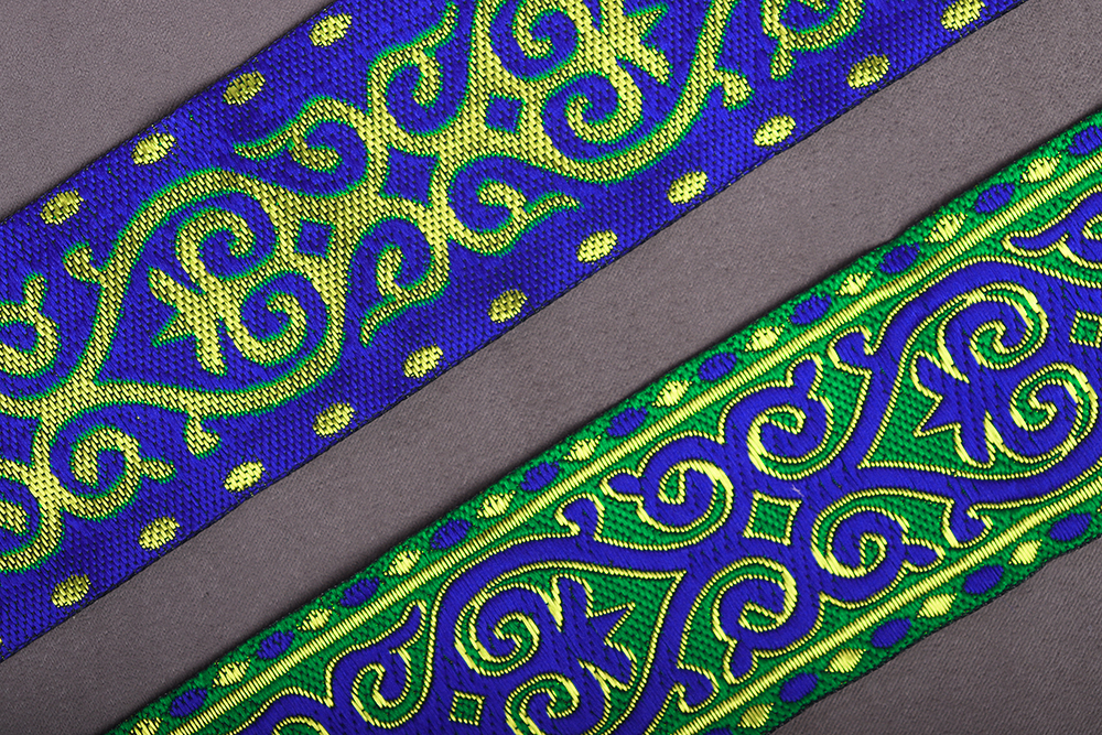 Тесьма жаккардовая 50мм №70 Узор Зеленый/Синий/Золото