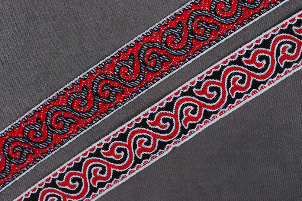 Лента 22мм жаккардовая 9595 Северный Орнамент Черный/красный/белый