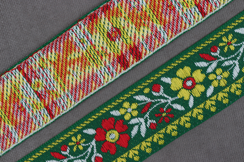 Лента 31мм жаккардовая 9803 Цветок Зеленый/желтый/красный/белый