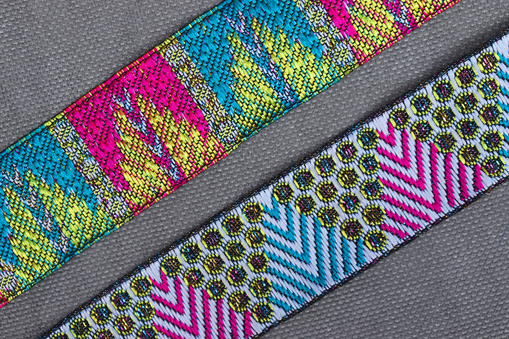 Тесьма жаккардовая 25мм СТ23 Бирюзовый/Фуксия/Золотой/Белый