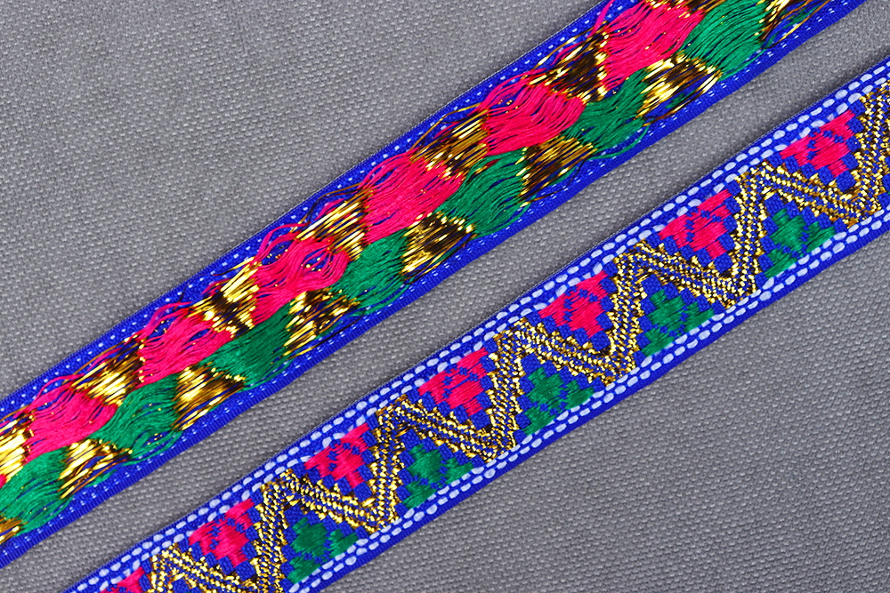 Тесьма жаккардовая 20мм 27-28/14 Зигзаг Синий/Зеленый/Розовый/Золото