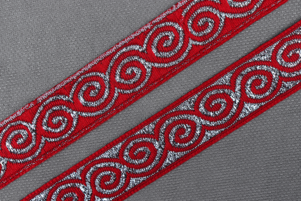 Лента 18мм жаккардовая 8681 Бесконечность Серебро/Красный