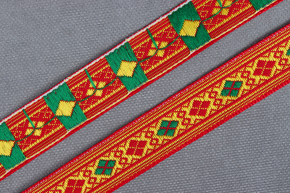 Лента 17мм жаккардовая 8996 Ромбы Красный/Зеленый/Желтый