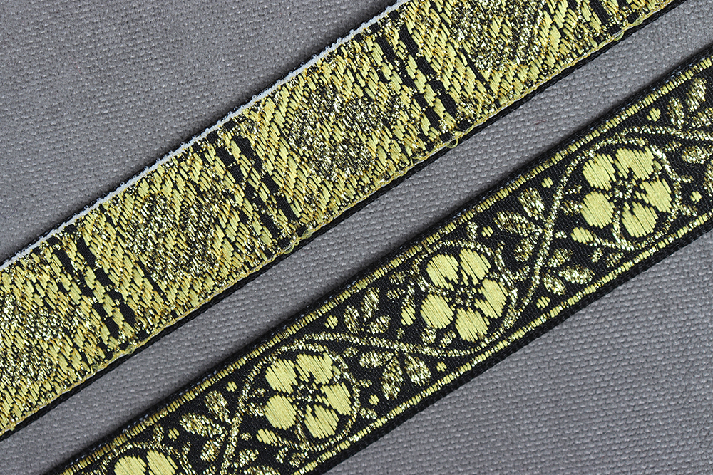 Лента 23мм жаккардовая 9618 Цветок Черный/золото