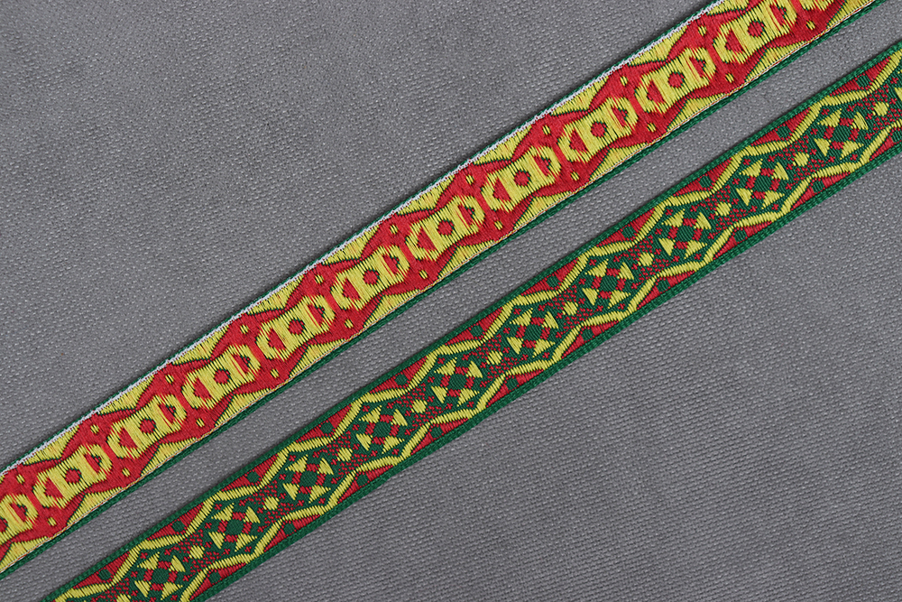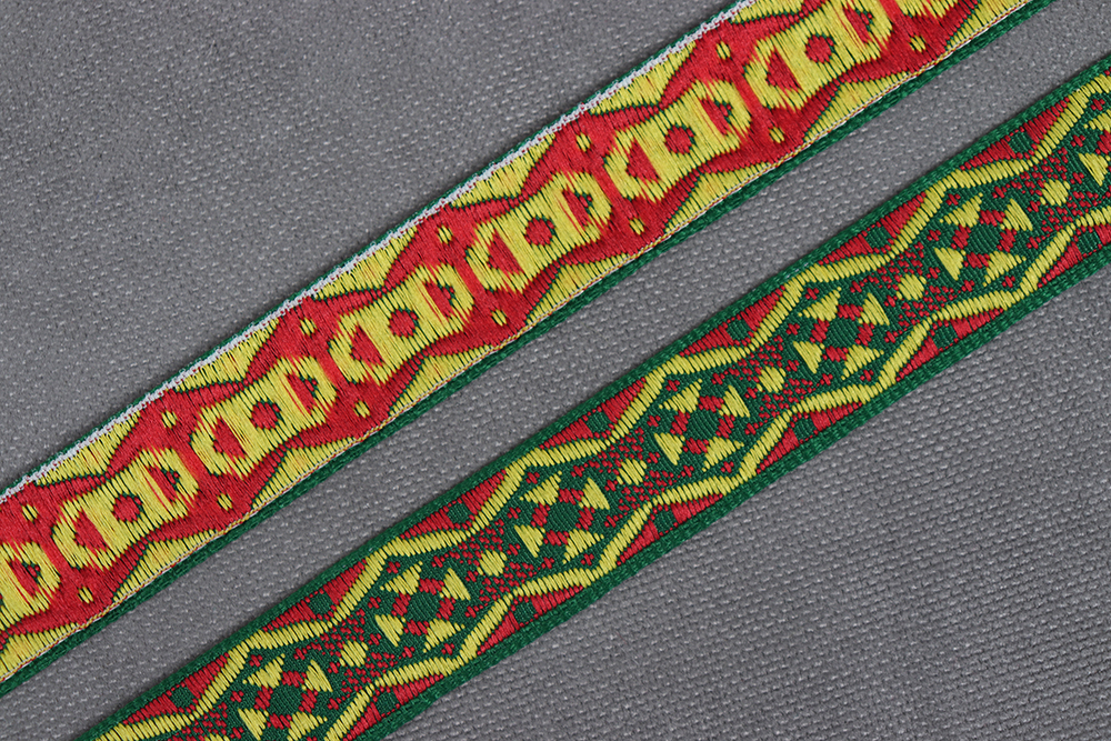 Лента 17мм жаккардовая 8383 Орнамент Зеленый/желтый/красный