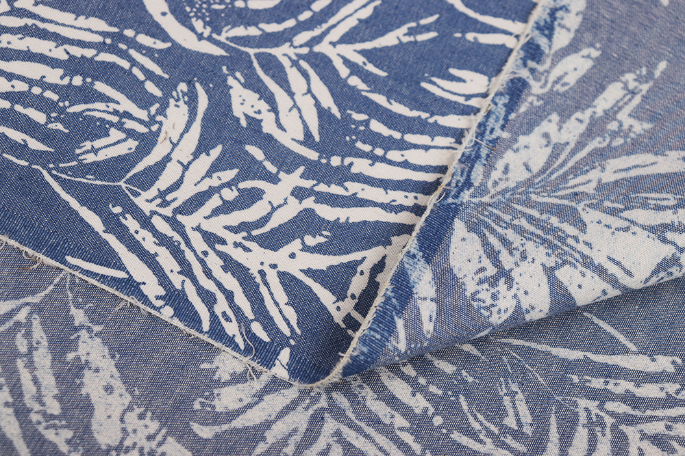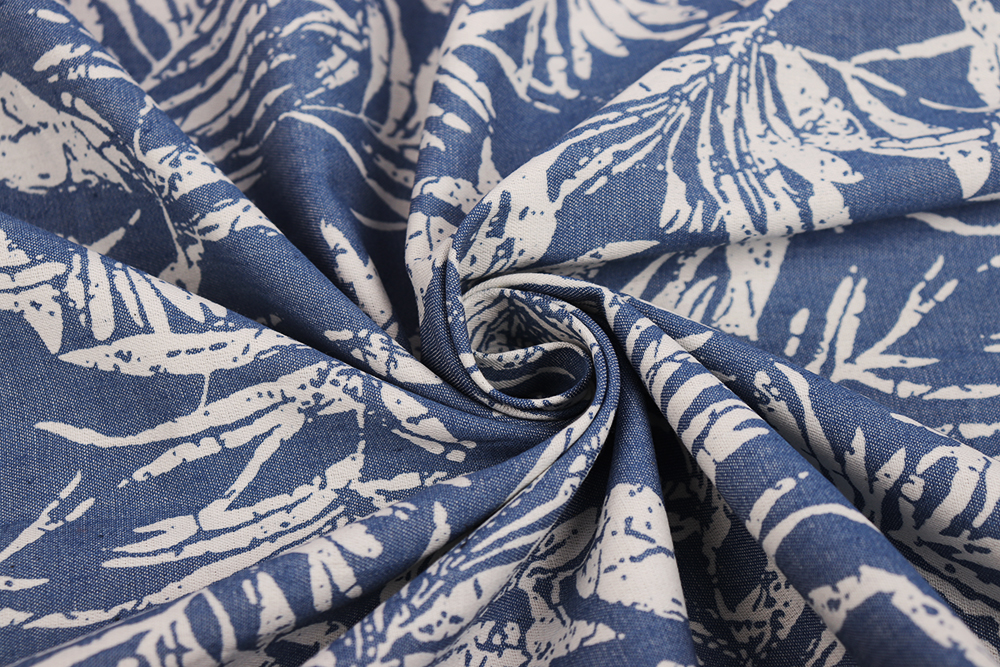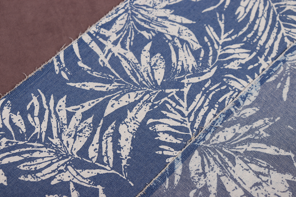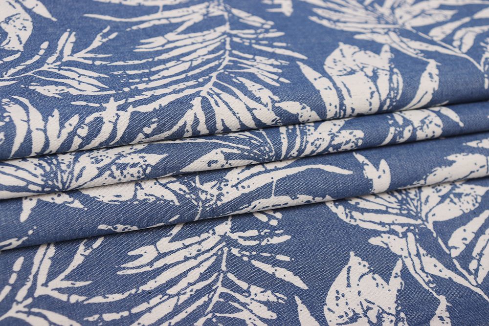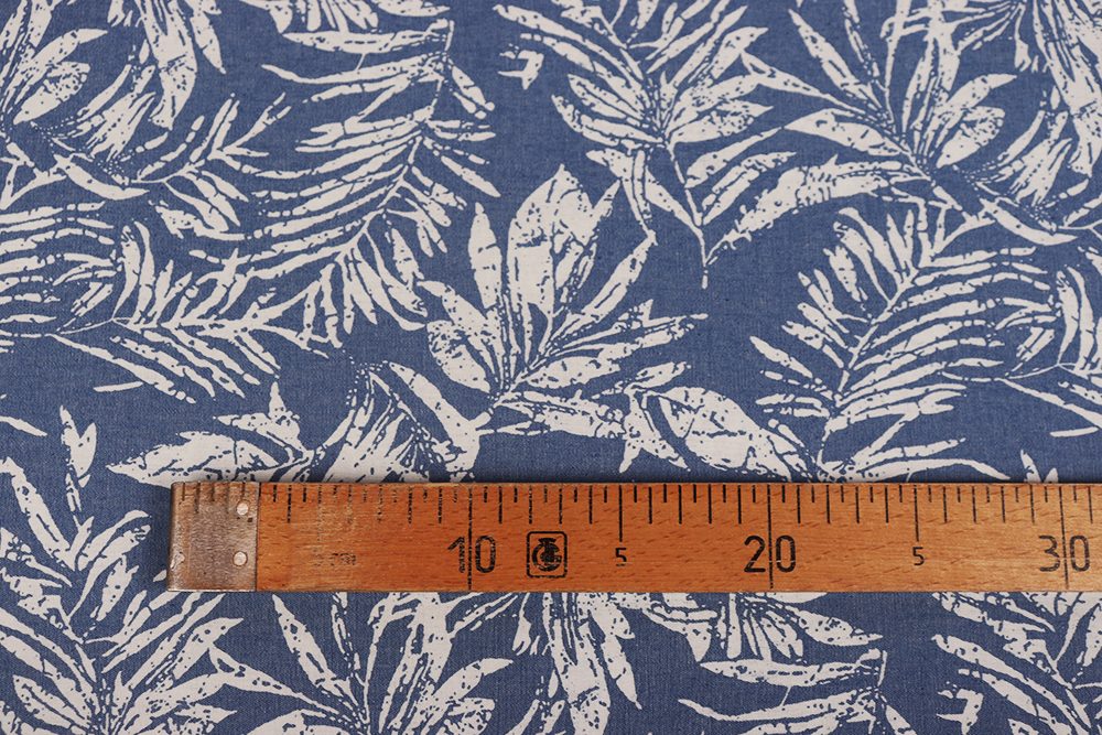 Джинс набивной Листья на голубом 010710.1