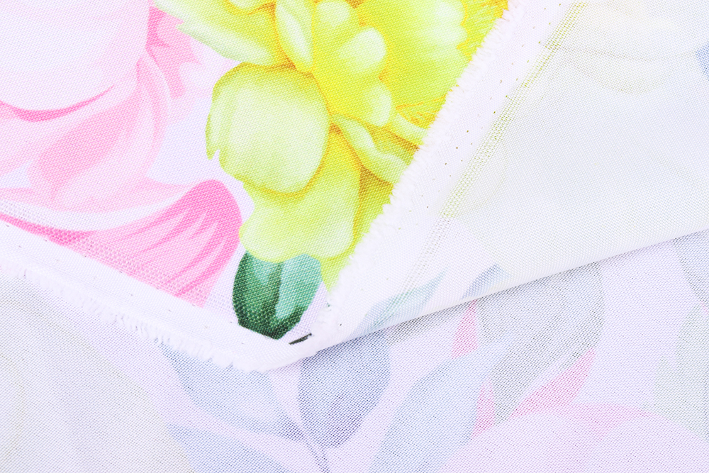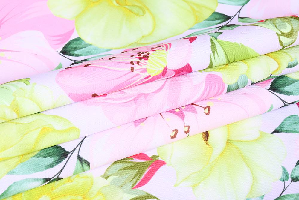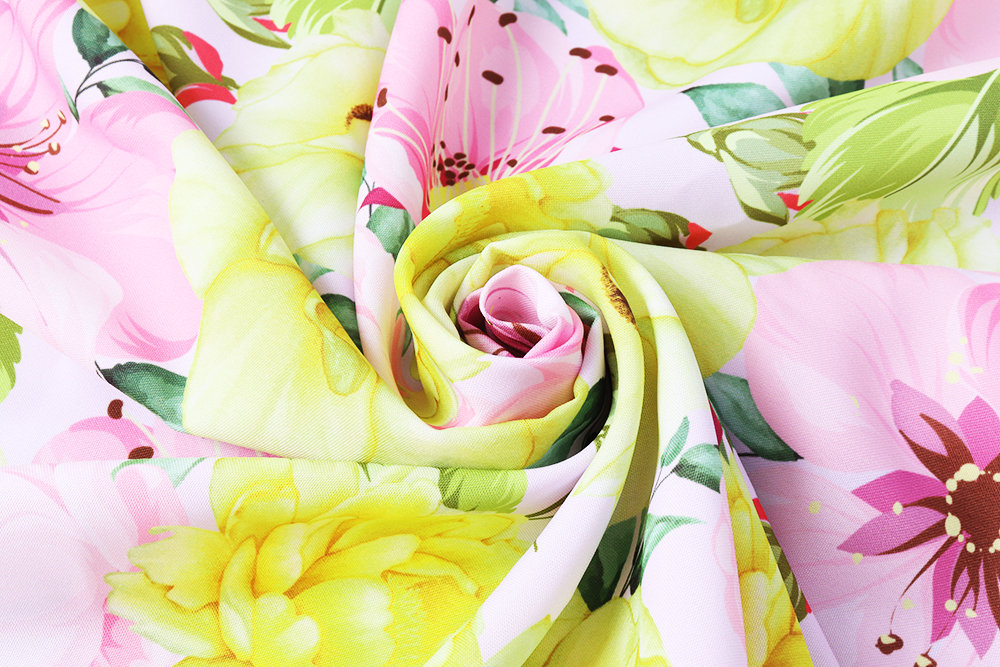 Габардин набивной Желтые/розовые цветы на белом 007796.231