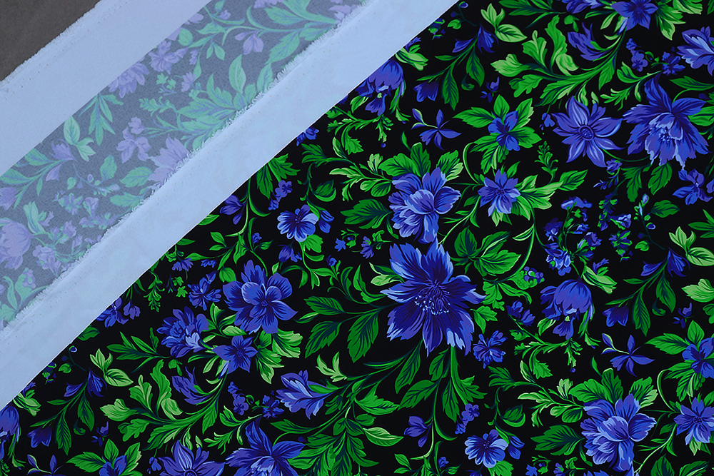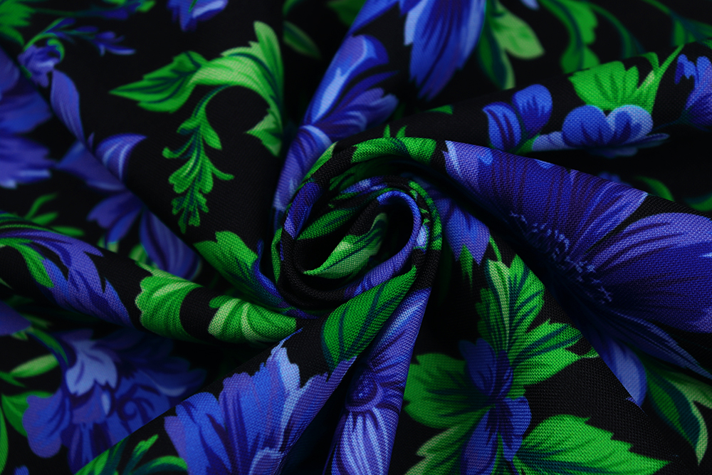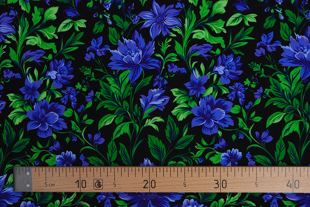 Габардин набивной Васильковые цветы на черном 007796.115