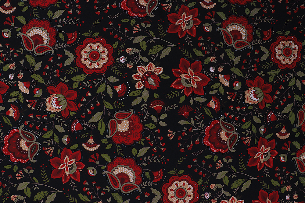 Габардин набивной Бордовые цветы на черном 007796.112