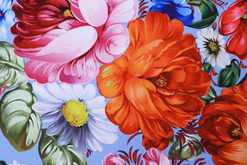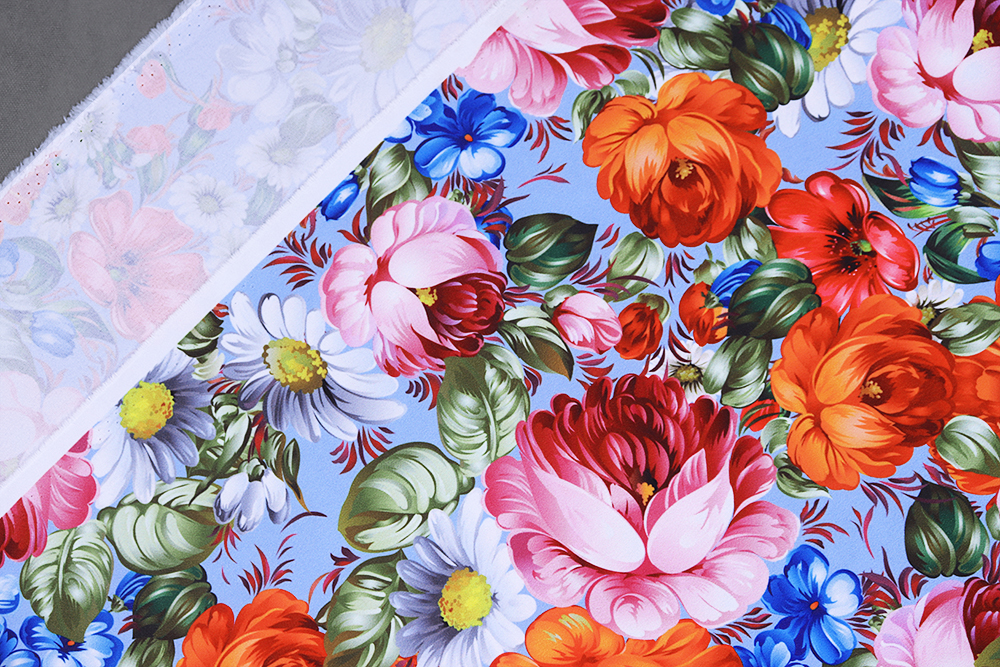 Габардин набивной Цветы на голубом 007796.130