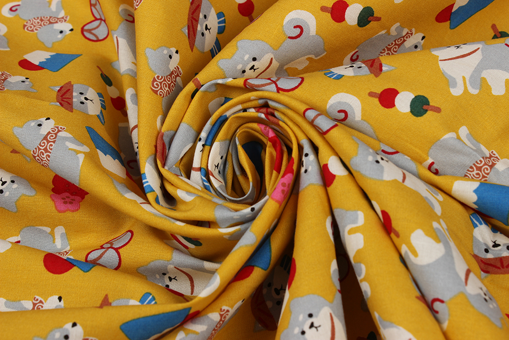 Хлопок набивной Собачки на желтом 012001.1