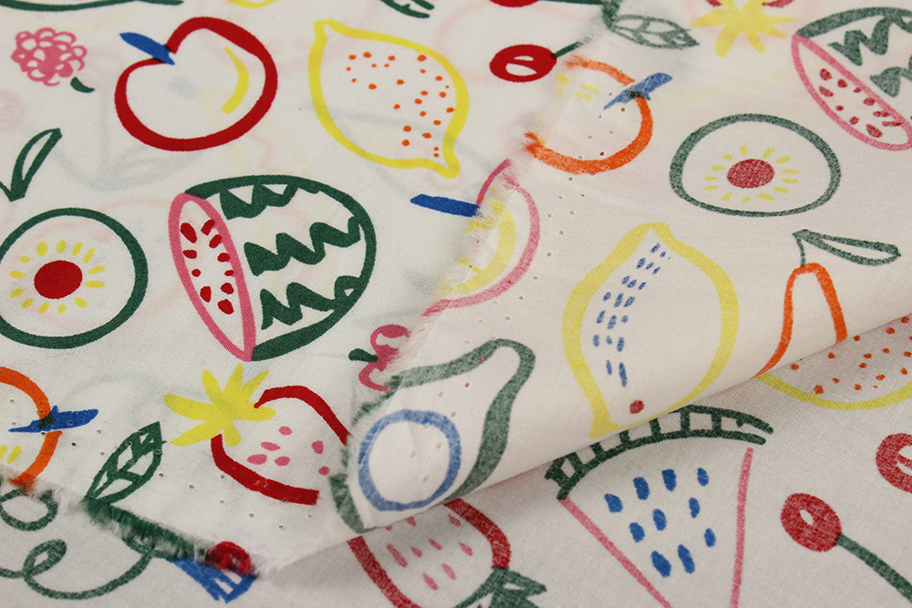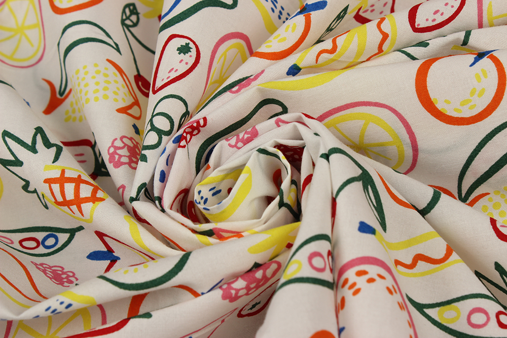 Хлопок-стрейч Неоновые фрукты на белом 012002.11