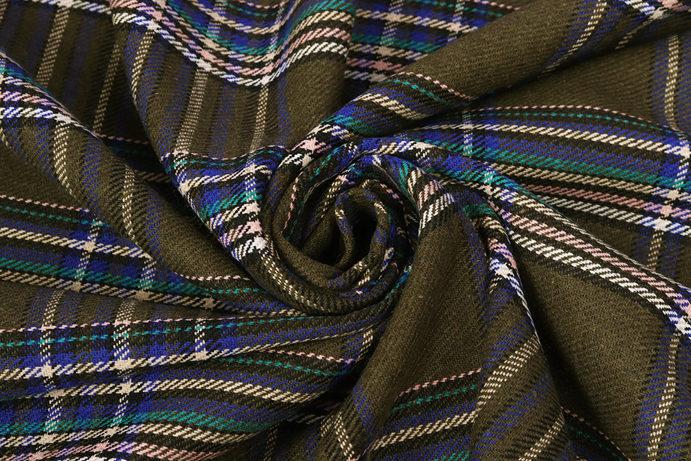 Клетка костюмно-пальтовая 2908 260гр/м.кв.Хаки/синий/зеленый 009739.6