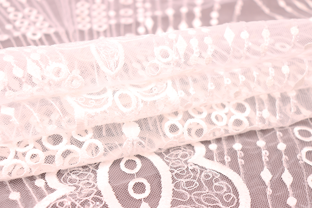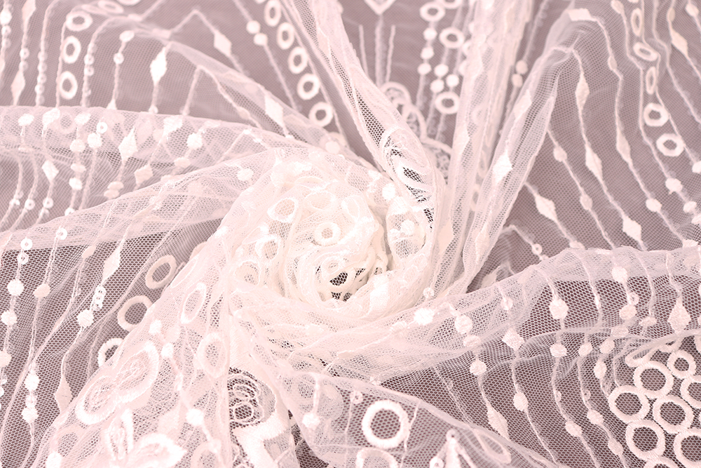 Вышивка на сетке с пайетками 10144 Молочный 012178.1