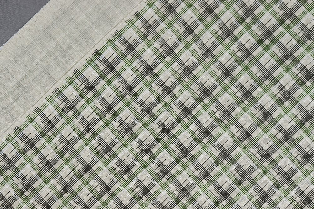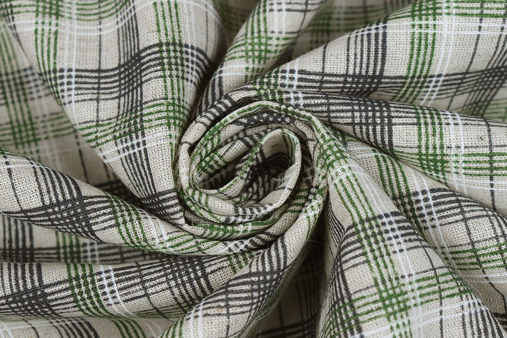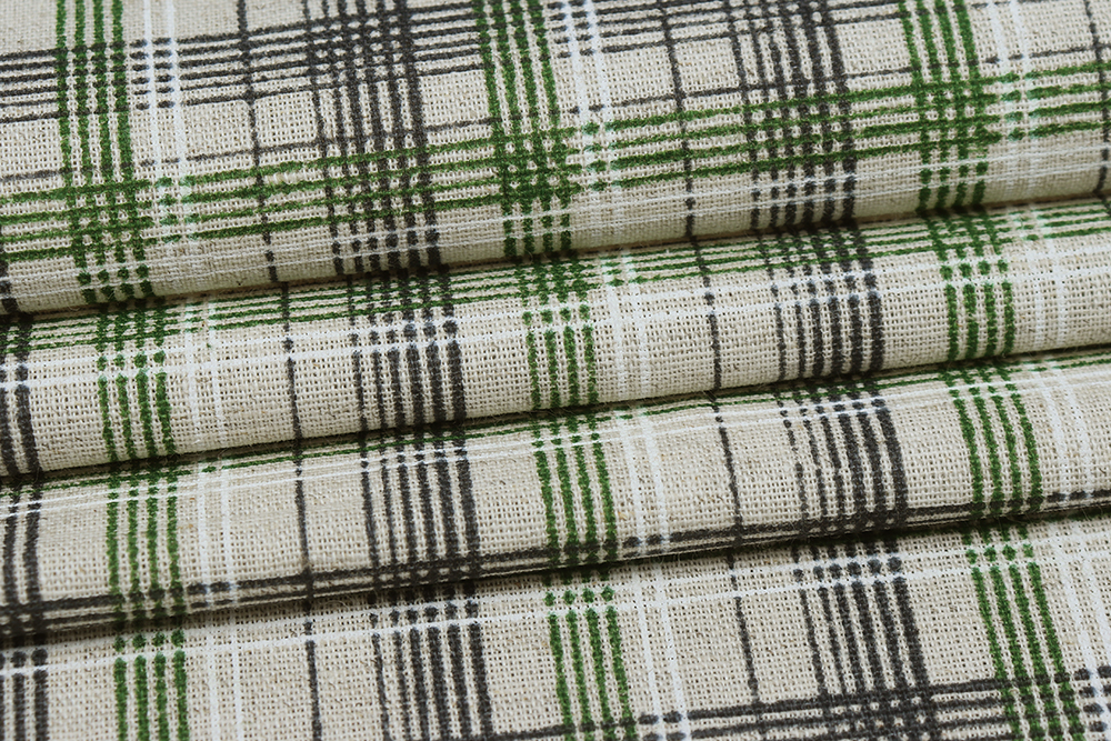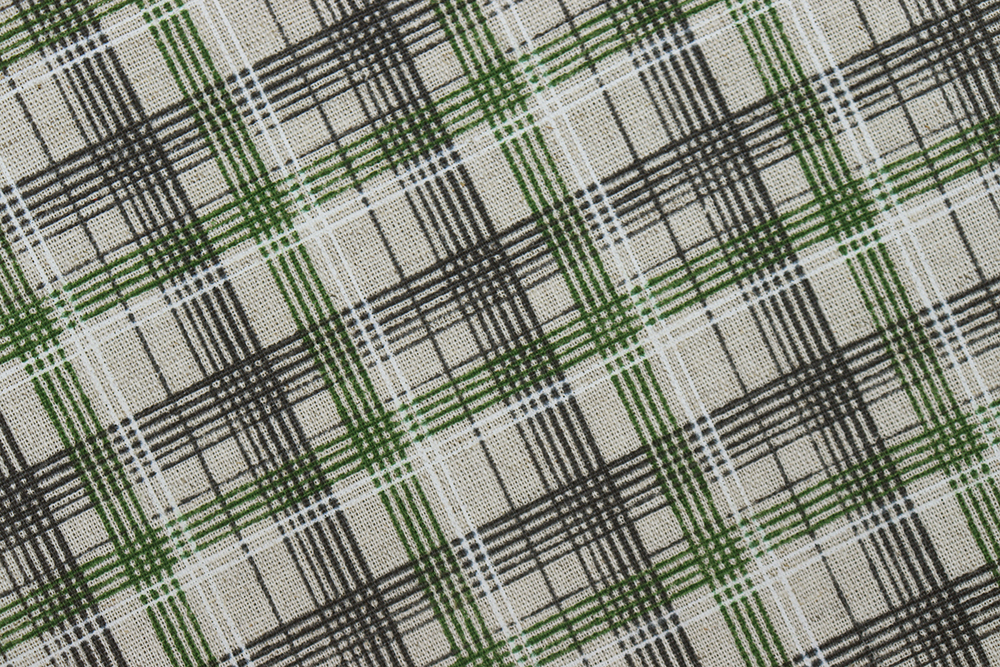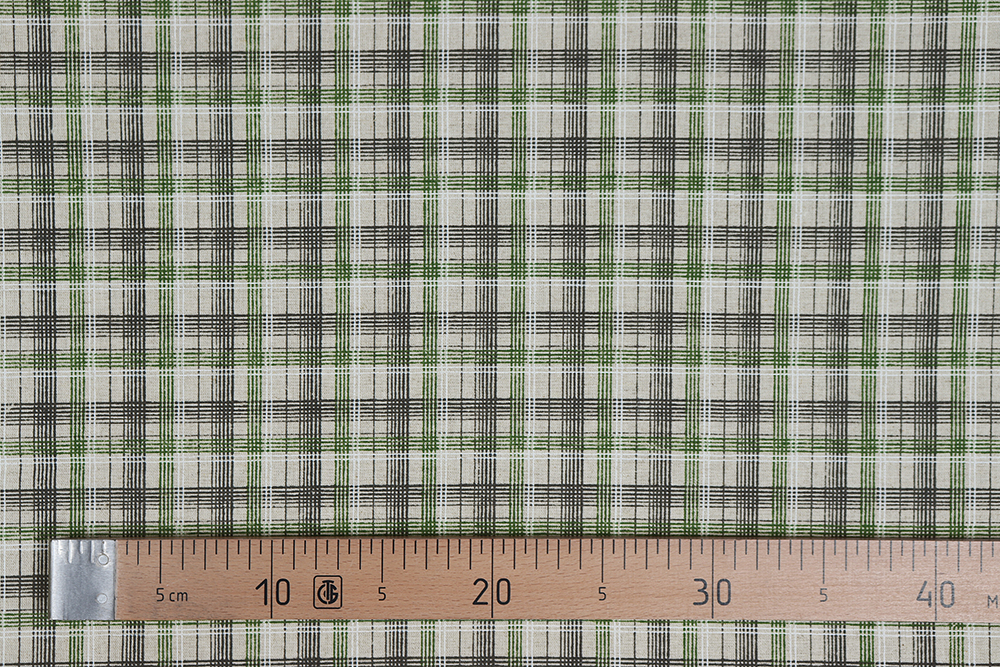 Лен набивной П-25 150 ИВ Черно-зеленая клетка на бежевом 009028.401