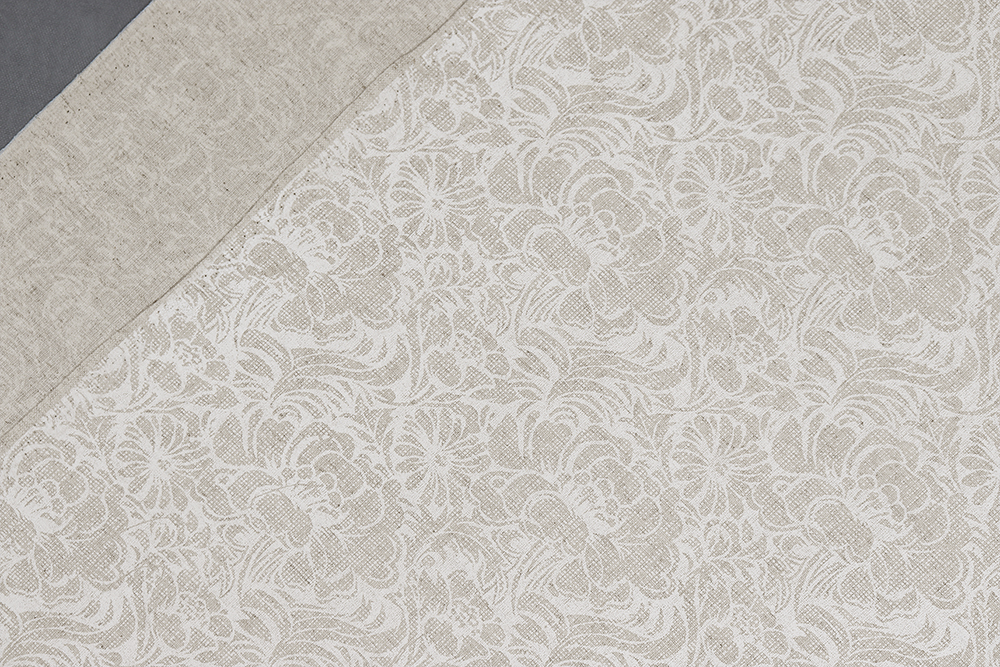 Лен набивной П-25 150 ИВ Белые цветы на сером 009028.832