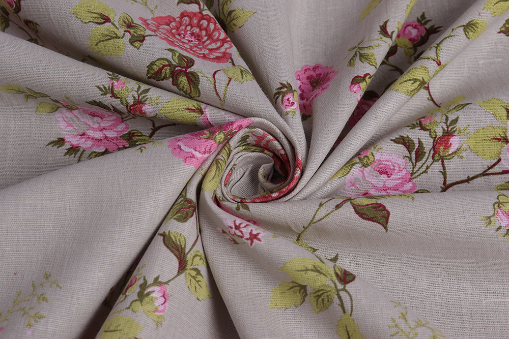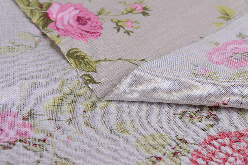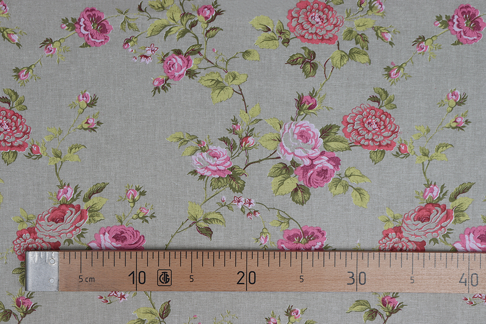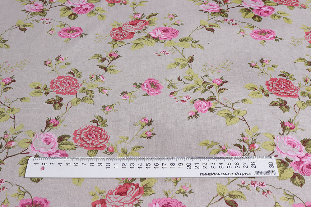 Лён набивной 145 гр/м.кв. Роза Прованс на сером 010655.399