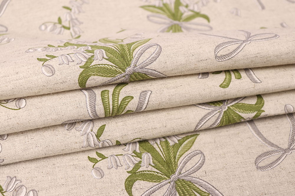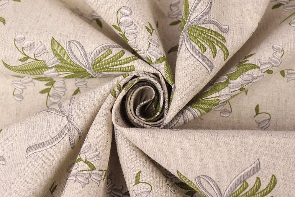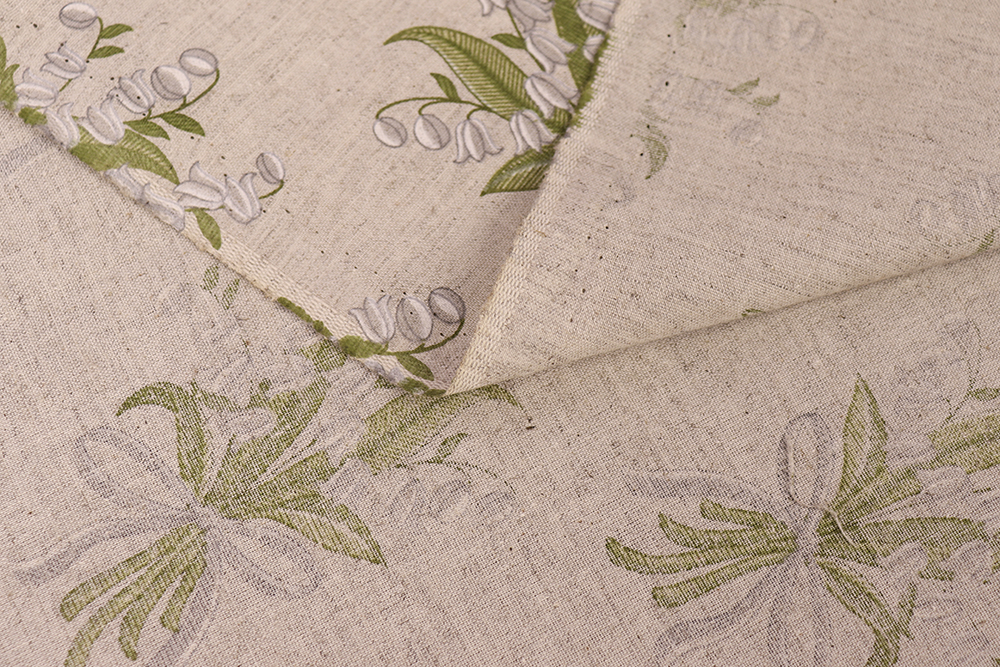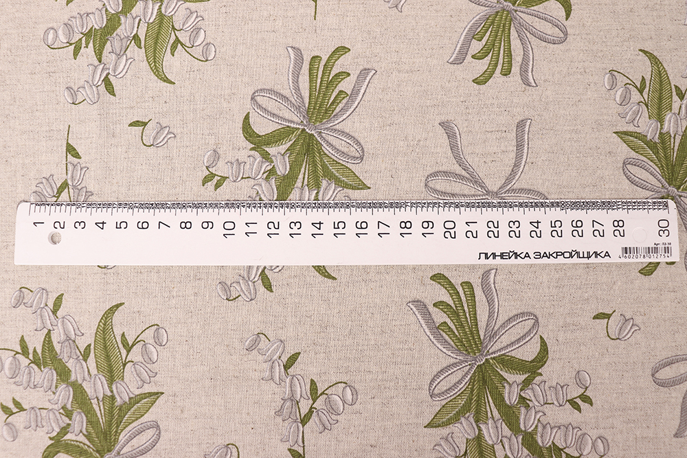 Лен набивной П-25 150 ИВ Ландыши на бежевом 009028.001