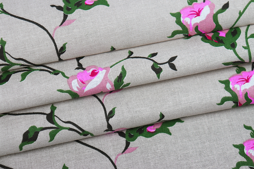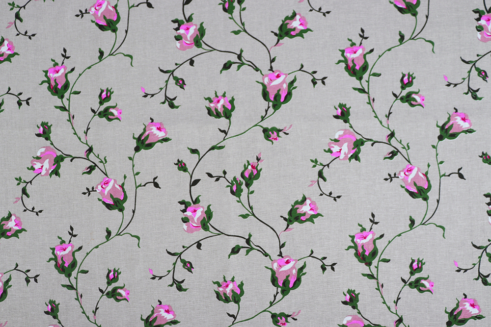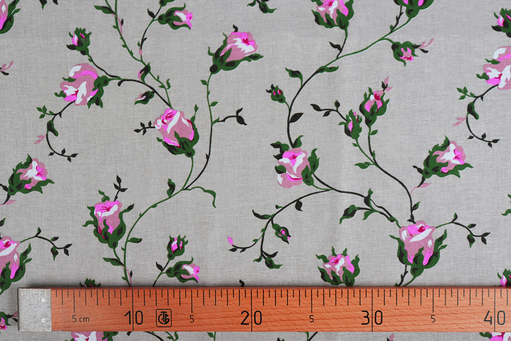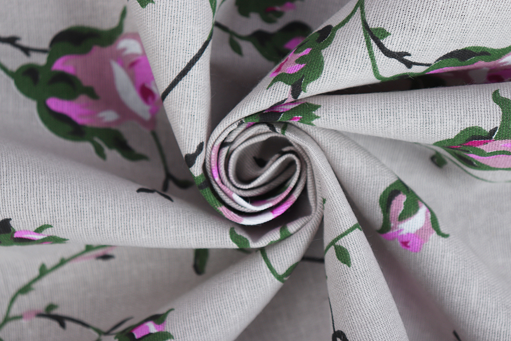 Лён набивной 145 гр/м.кв. Бутоны на сером 010655.1366