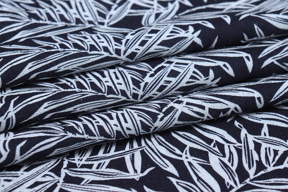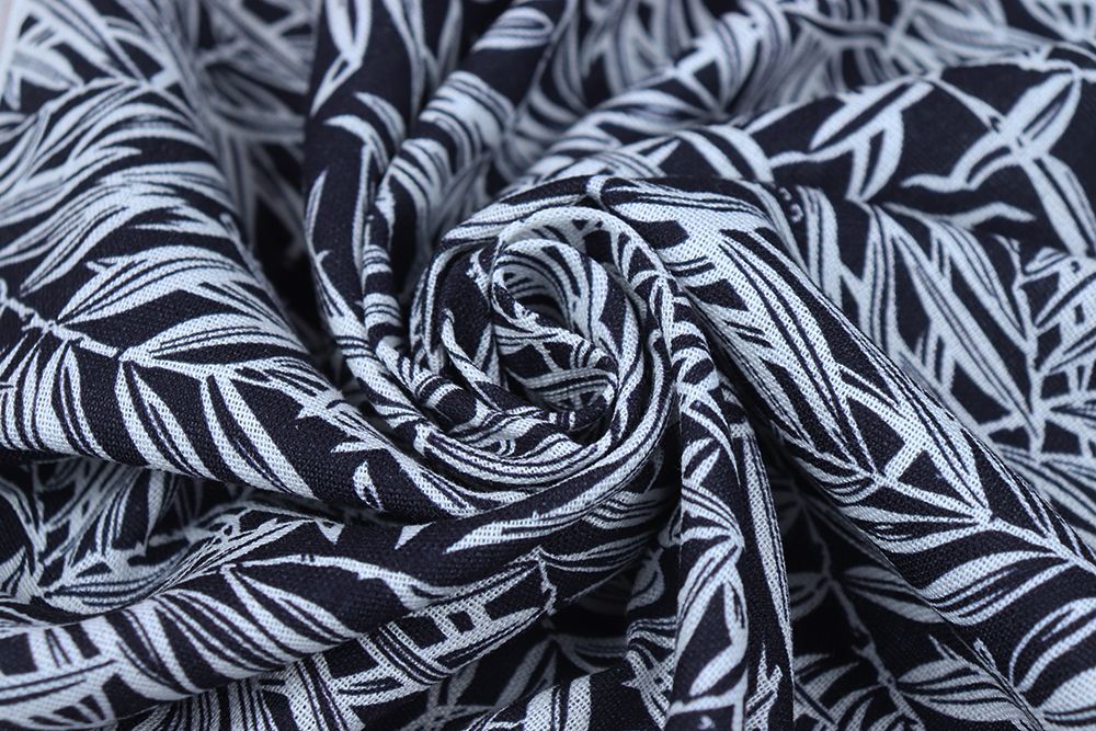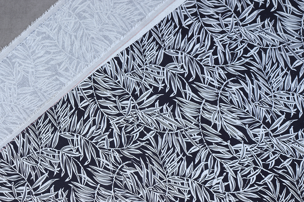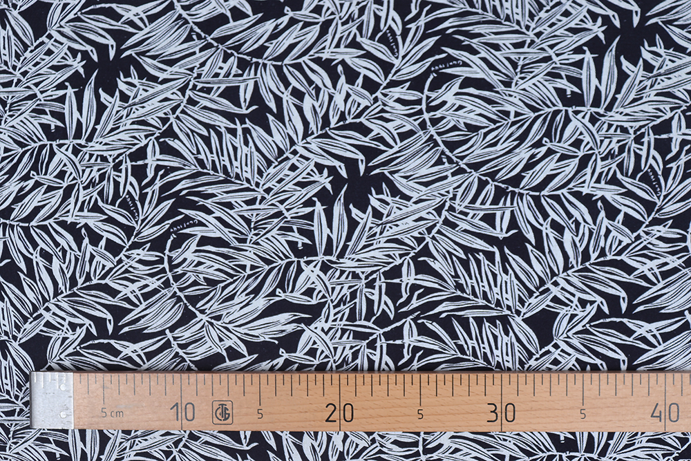Лен-вискоза 3482 Листья Белый/т.синий 011769.9